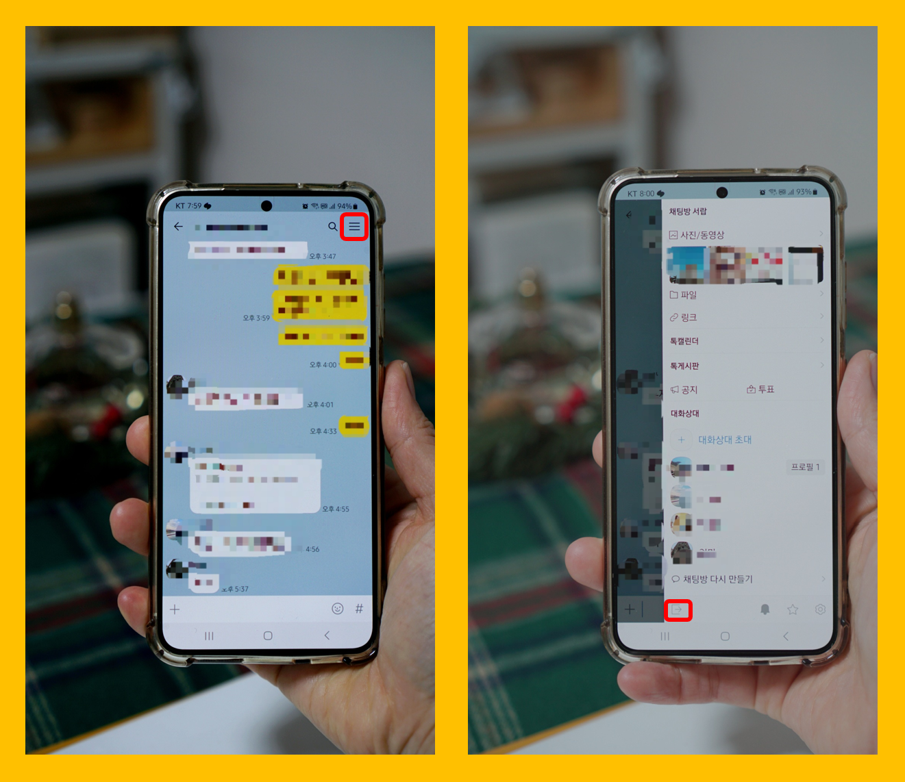 단톡방에 접속한 후 마찬가지로 오른쪽 상단에 있는 줄 3개를 클릭합니다.